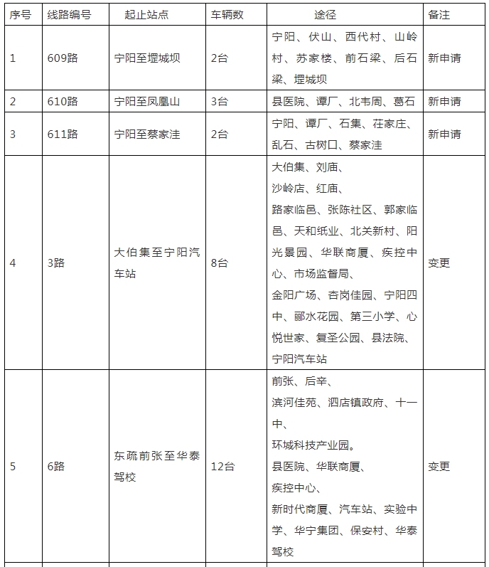 為更好地滿足廣大群眾出行需求,進(jìn)一步提高公交行業(yè)服務(wù)質(zhì)量,寧陽縣行政審批服務(wù)局根據(jù)市場需求情況,對近期寧陽縣文成公共交通有限公司申報的公交線路經(jīng)營事項進(jìn)行了研究,現(xiàn)將有關(guān)情況予以公示(詳見附表),公示期限為2023年11月15日至2023年11月19日,歡迎社會各界依據(jù)國家法律、法規(guī)進(jìn)行監(jiān)督。